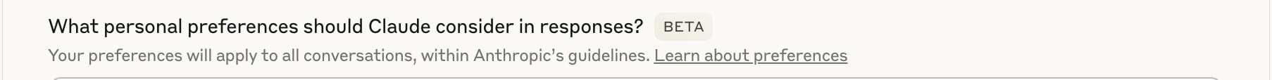 You can think of it like programming the LLM with as much relevant information and context as you want. Much in the same way you might in a single chat with an LLM, where you tell it about yourself or your business or what kind of project you are working on - but with this system preferences method, Claude already has that context for every conversation. My experience has been that this dramatically improves the quality of the output while reducing the amount of interactions (or tokens) needed. The screenshot below is what you’ll want to look for under the Settings page.